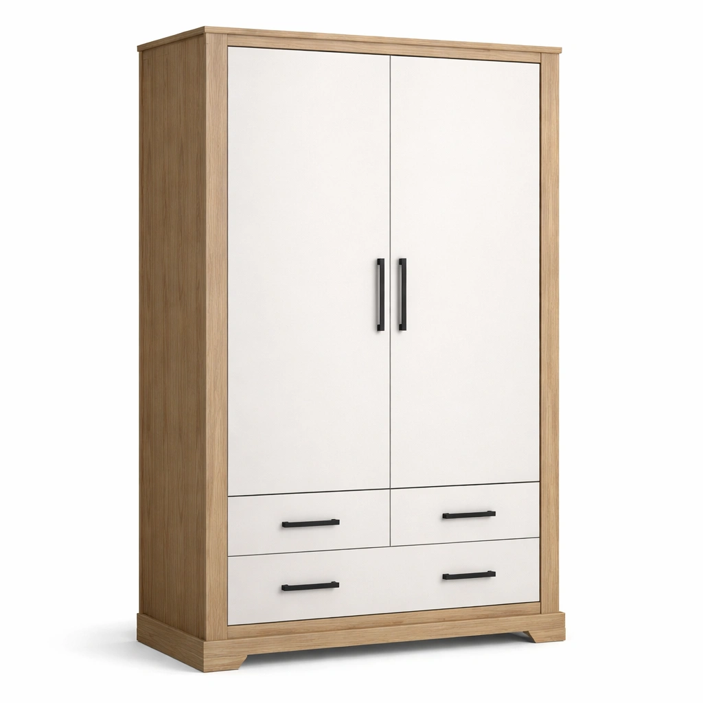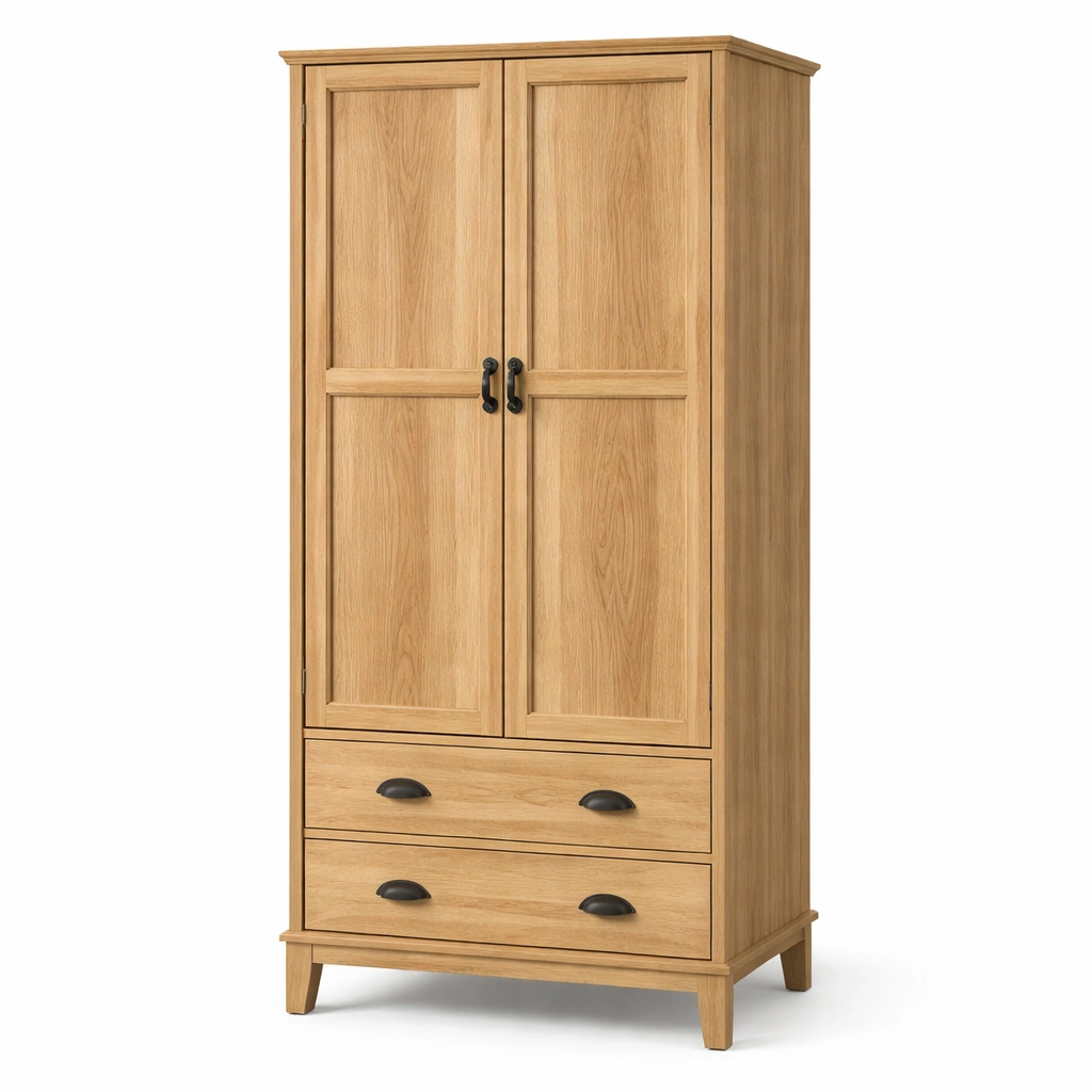 Armario de madera de roble con 2 puertas y 2 cajones