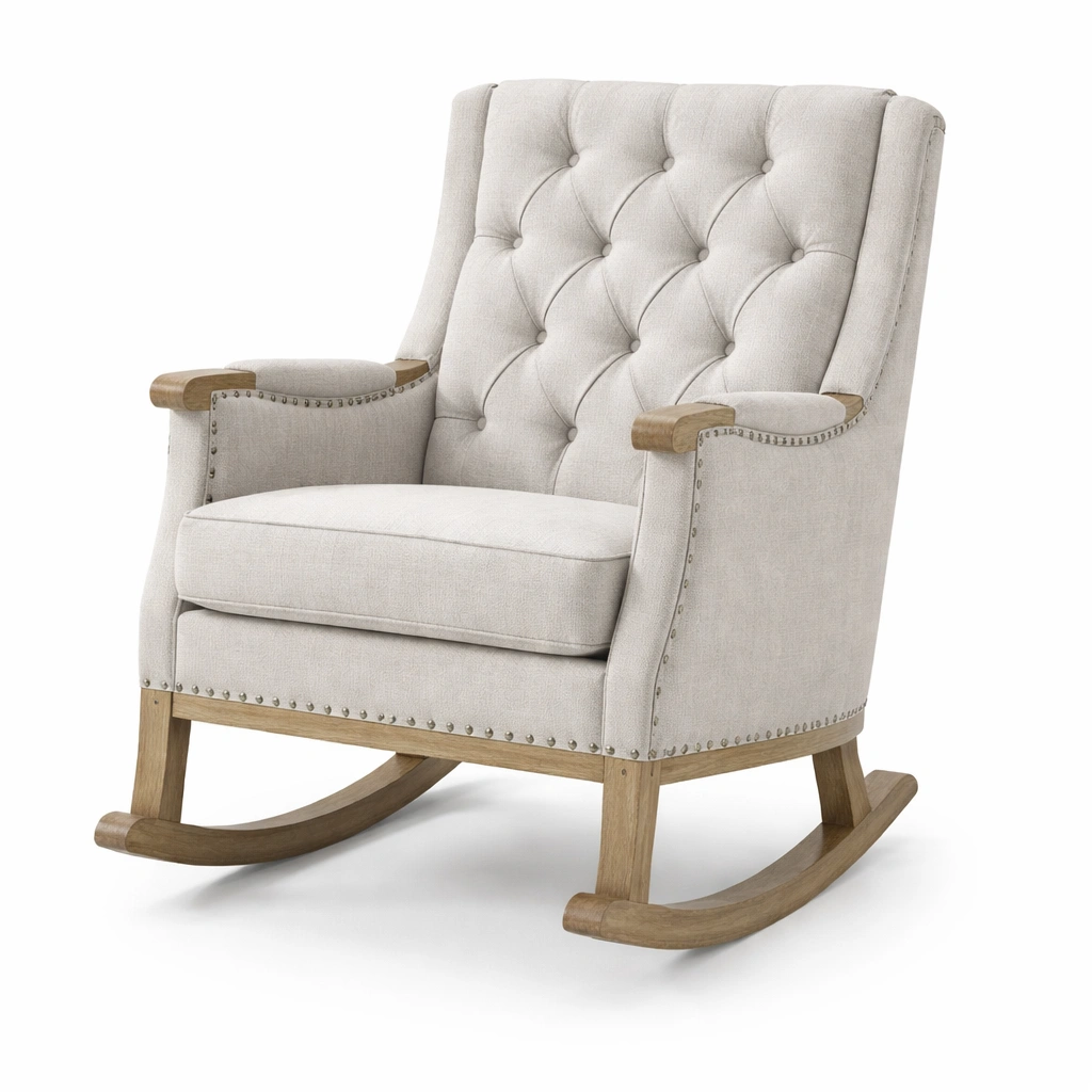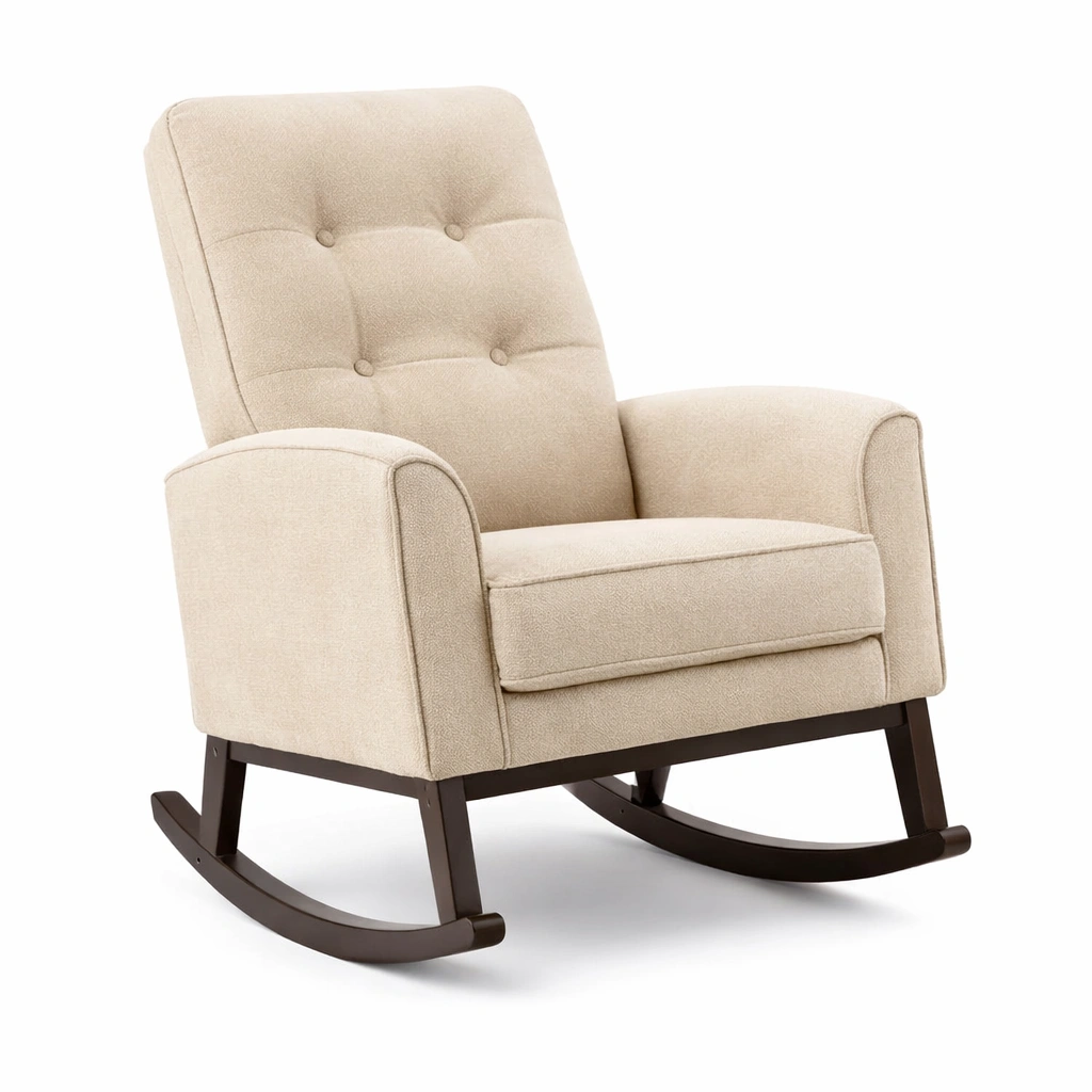 Silla mecedora de madera con tapizado de poliéster beige