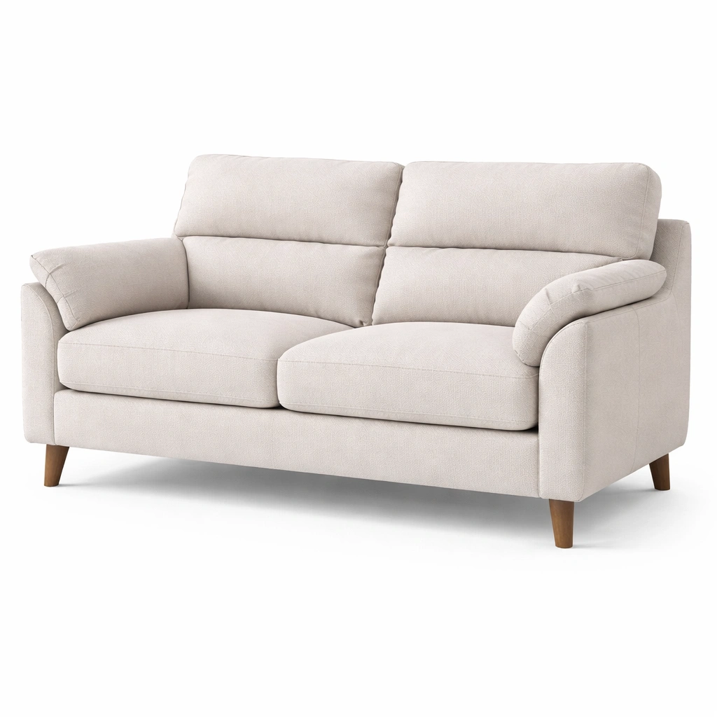 Material: Tela de poliéster con estructura interna de madera. Las patas son de madera sólida.
